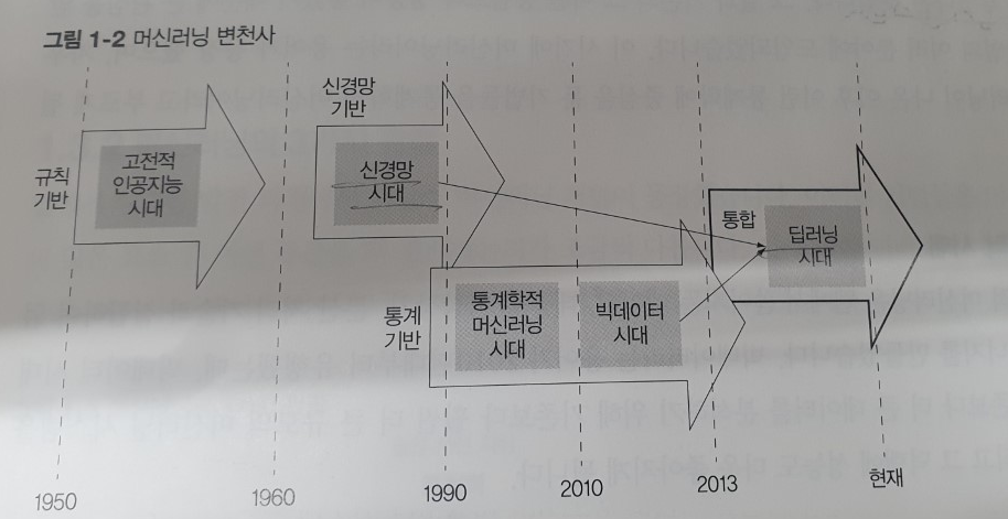 - 딥러닝 시대 : 기존의 신경망보다 훨씬 더 복잡한, 즉 깊이기 같은 신경망 + 통계학적 머신 러닝과 접목
